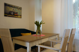 Das Apartment ist hervorragend an den öffentlichen Nahverkehr angebunden: U-Bahn, Straßenbahn und Bus liegen nur wenige Gehminuten entfernt. So erreichen Sie den Alexanderplatz, die Museumsinsel oder andere zentrale Berliner Highlights bequem und schnell.